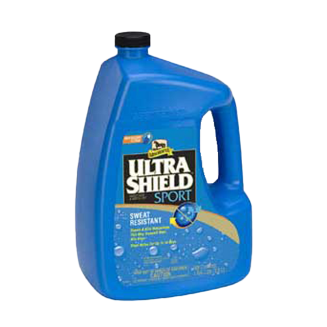 Cuando desee proteger a su caballo en condiciones de calor o humedad, el aerosol para moscas resistente al sudor Ultra Shield® Sport funciona tan duro como usted y su compañero equino. Botella de aerosol de 32 oz y tamaños de galón.