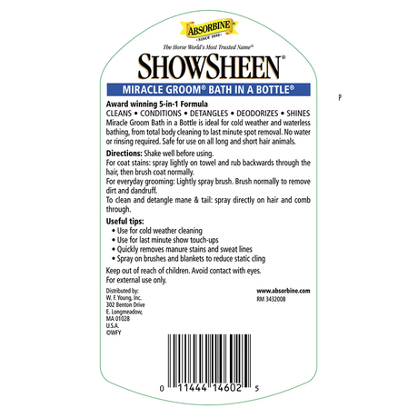 Precio normal $ 703.71Precio unitario /AgotadoDisponibles (73 unidades)SHOWSHEEN MIRACLE GROOM ABSORBINE (32 OZ)