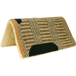 Manta de tejido simple en la parte superior e inferior con un centro de fieltro grueso de una pulgada y cueros negros resistentes al desgaste.
