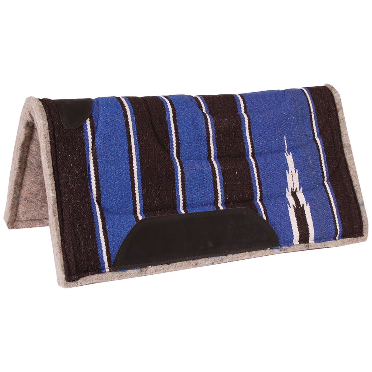 Parte superior de manta Navajo, centro de fieltro grueso de una pulgada, parte inferior de vellón económico y cuero negro resistente.