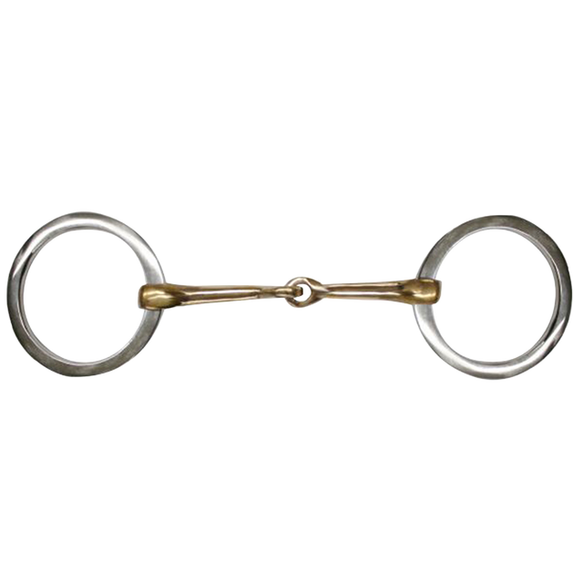 Bocado estilo snaffle con anillos O‑Ring de 3.75″, fabricado en acero inoxidable con una boquilla partida de 5.25″ en cobre. El diseño establece una comunicación directa, con estabilidad lateral mejorada gracias a los carrillos estilo O‑Ring, y promueve salivación gracias al cobre. Ideal para caballos de tamaño completo (full size)