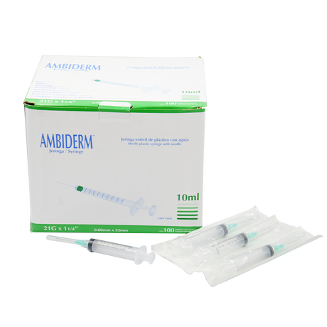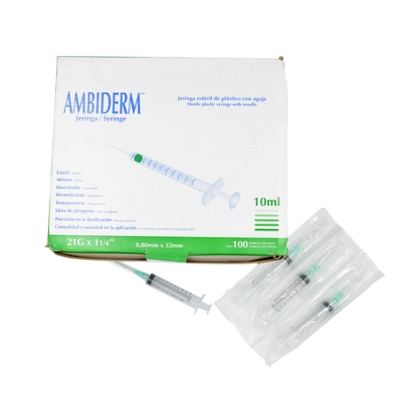 JERINGA ESTERIL AMBIDERM (10 ml LL Aguja 20 x 1 1/4 Caja con 100)