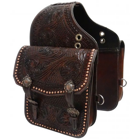 Precio normal $ 5,611.65Precio unitario /AgotadoMuy poca disponibilidad (2 unidades)SHOWMAN ALFORJA DE CUERO OSCURO CON CONCHOS Y HEBILLAS DE BRONCE ANTIGUO GRAVADOS