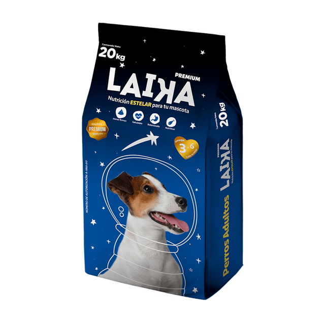 En honor a la perrita cosmonauta Laika, el primer ser vivo en orbitar la tierra, hemos desarrollado Laika Premium, un alimento formulado con ingredientes de excelente calidad, para perros adultos de todas las razas, adicionado con vitaminas, minerales y prebiótico que mantendrán a tu perro en un estado óptimo de salud. Contiene los mejores ingredientes y un proceso con los más altos estándares de calidad, para que tu mascota tenga una vida plena y saludable.