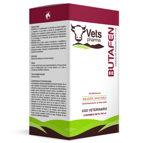 Precio normal Desde $ 137.85Precio unitario /AgotadoPoca disponibilidad (9 unidades)BUTAFEN 100 ML (FENILBUTAZONA 200mg/ml)