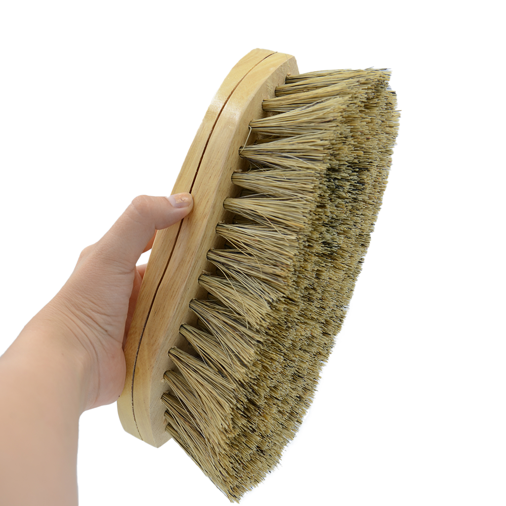 Sus cerdas de fibra de tampico blanqueadas ofrecen una textura suave pero efectiva, ideal para el cuidado corporal general de uso ligero a medio.