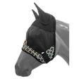 Máscara contra moscas del tamaño de un caballo con detalles en estampado azteca Showman ® y orejas. La máscara contra moscas está hecha de fibra natural y presenta una abertura en la nuca del caballo para el mechón y un cierre de velcro alrededor de la mejilla. Fabricado por productos Showman®.