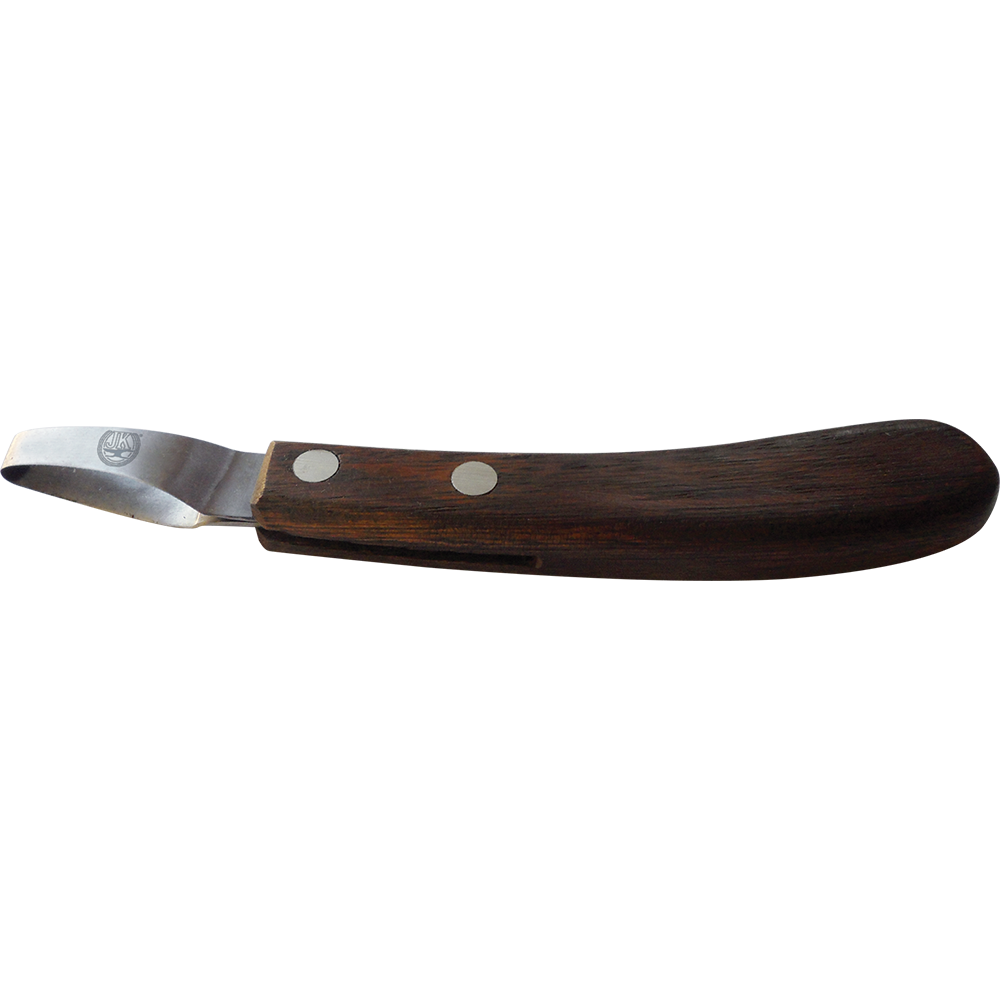 El gancho frontal permite recortar los lados de la rana y también abrir agujeros para aliviar los abscesos.