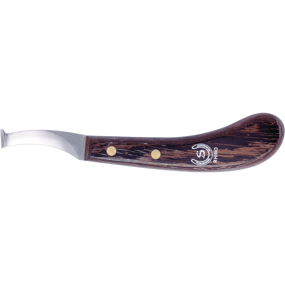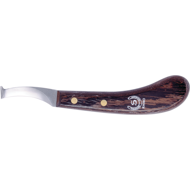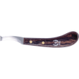 Navaja de hoja recta, ligeramente curvada y cóncava en los extremos, se adapta mejor a la forma cóncava de la suela. Este modelo tiene una cresta para limpiar los dedos en el lado opuesto del rizo.