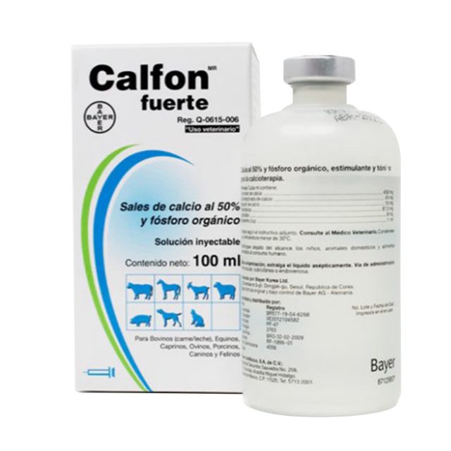 Las tres sales cálcicas contenidas en Calfon fuerte, reúnen las cualidades necesarias para tratar las afecciones por falta de calcio. La adición de fósforo orgánico a la fórmula estimula el metabolismo y mejora el aprovechamiento del calcio. Posee una excelente tolerancia de los tejidos en el sitio de aplicación.