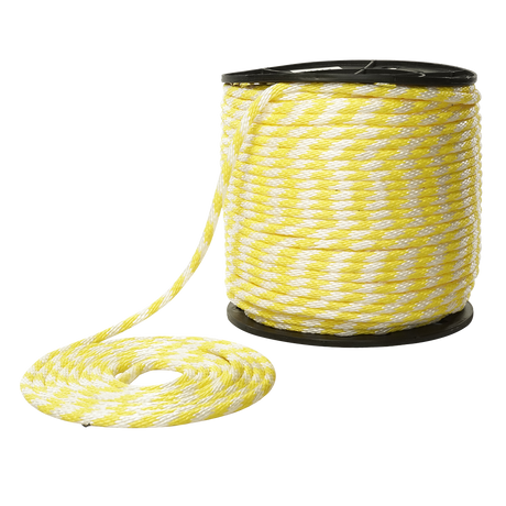Precio normal $ 2,580.36Precio unitario /Agotado SOGA TRENZADA ESPIROIDE ELVONTEK 15/32 AMARILLO/BLANCO X METROS