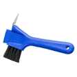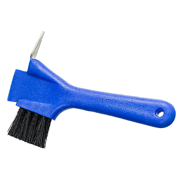 El rastrillo de casco con cerdas rígidas es una herramienta diseñada para la limpieza y mantenimiento diario de los cascos de los caballos. Permite remover suciedad, barro y restos de cama acumulados, asegurando un ambiente más higiénico para la pezuña y facilitando la inspección veterinaria o de herrador.