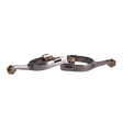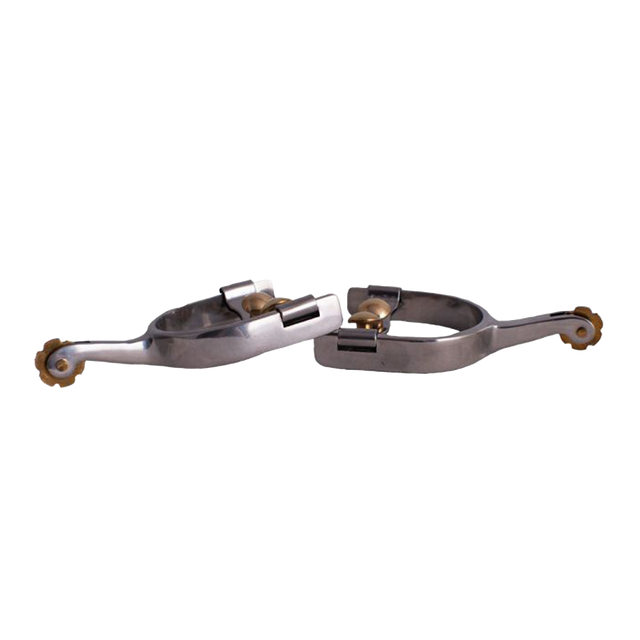 Espuelas de acero inoxidable diseñadas para jinetes jóvenes. Su construcción robusta y acabado pulido las hacen funcionales y discretas, ideales para entrenamiento y actividades diarias.