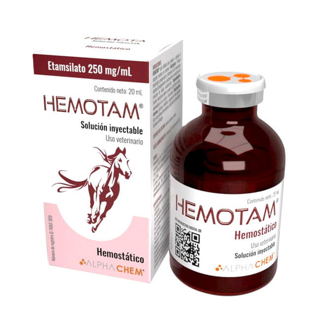 Administrar de 5 a 10 mg de etansilato por kg de peso corporal, equivalente a 2 ml de HEMOTAM por cada 50 a 100 kg de peso, como dosis única o durante 3 días seguidos cada 24 horas. La dosis e intervalo de aplicación pueden ser repetidos por el Médico Veterinario dependiendo de la severidad del caso.