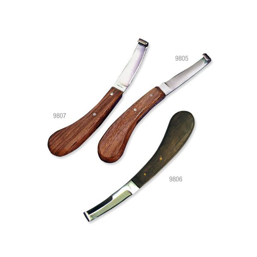 Tiene una hoja caída y mango de madera. Para recortar el casco del caballo. Se adapta a la mano derecha o izquierda dependiendo del modelo.