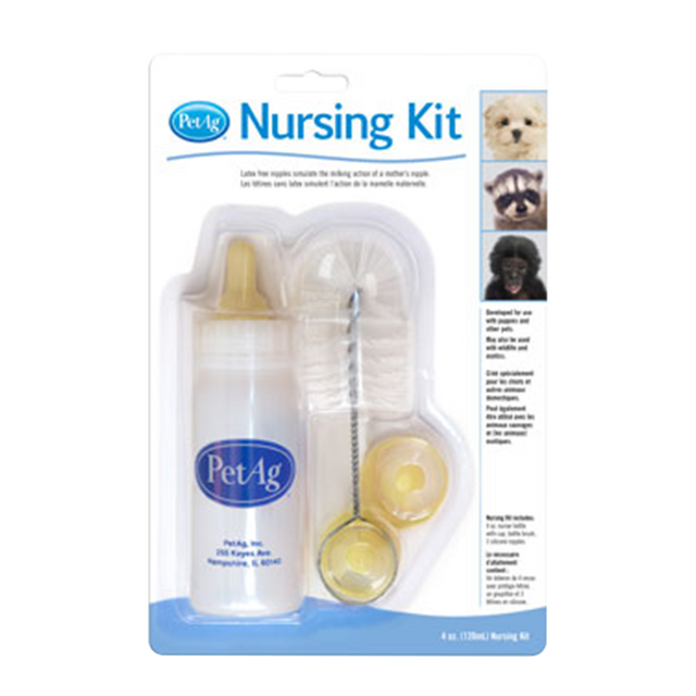 Un biberón desarrollado para promover la alimentación natural de Esbilac®, KMR® u otros líquidos a los animales. Además, incluye diferentes accesorios. Biberones y tetina especialmente diseñados para animales pequeños y grandes: 2 oz. para animales pequeños y 4 oz. para animales más grandes. La alimentación con biberón permite que el animal rechace la fórmula cuando está lleno. La acción de mamar desarrolla los músculos faciales y estimula el flujo normal de saliva.