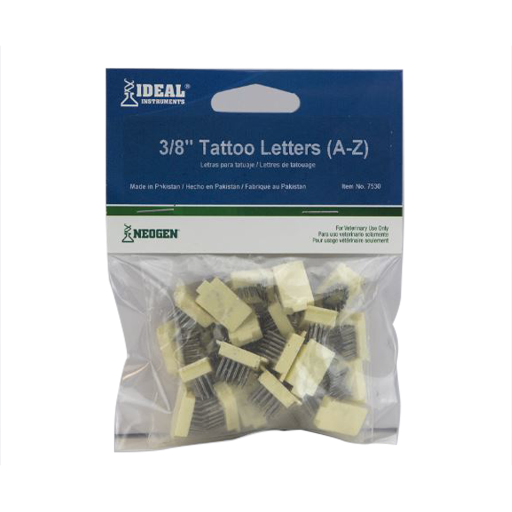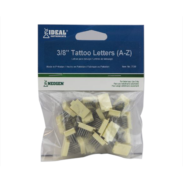 Los kits de tatuaje deal® son instrumentos versátiles y económicos con una construcción resistente que se utilizan para la identificación permanente de animales. Los alicates grandes sostienen cuatro letras o dígitos de 3/8". Los alicates pequeños sostienen cinco dígitos o letras de 5/16". Alicates de aleación de aluminio.