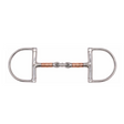 El bocado elíptico D con rodillo de cobre combina una embocadura de doble articulación con rodillos de cobre y carrilleras con anilla en D. La unión central elíptica reduce la presión en el paladar y ayuda a distribuirla de forma más uniforme sobre la lengua y las barras. Los rodillos de cobre estimulan la salivación y dificultan que el caballo se incline o agarre el bocado. Las carrilleras con anilla en D evitan que el bocado se deslice y ofrecen mayor soporte lateral. Este bocado es ideal para caballos que se benefician de una embocadura más móvil, pero que necesitan una guía clara y una conexión firme y consistente.