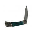 El cuchillo con mango de madera es una herramienta artesanal que combina funcionalidad y estética rústica. Su hoja de acero inoxidable de 3" es ideal para tareas cotidianas y actividades al aire libre. El mango de madera verde presenta un diseño grabado, añadiendo un toque distintivo al cuchillo. Este cuchillo se pliega hasta 4" de largo y viene acompañado de una funda de nylon para facilitar su transporte.