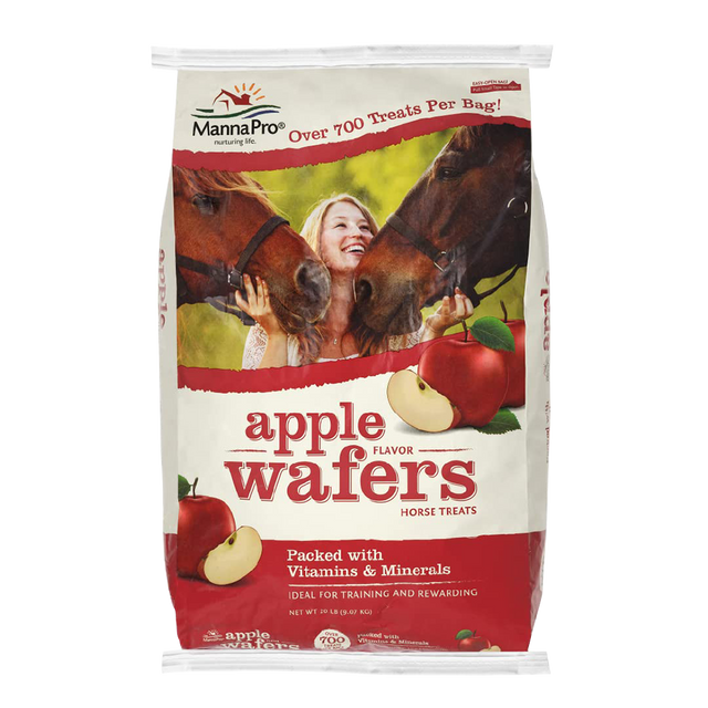 Las obleas de manzana son las más deliciosas para caballos. Nuestro nuevo tamaño de oblea pequeño cabe cómodamente en su bolsillo, lo que lo hace ideal para entrenar o recompensar. Las obleas de manzana de Manna Pro® son tan deliciosas que tu caballo no podrá resistir el sabor.