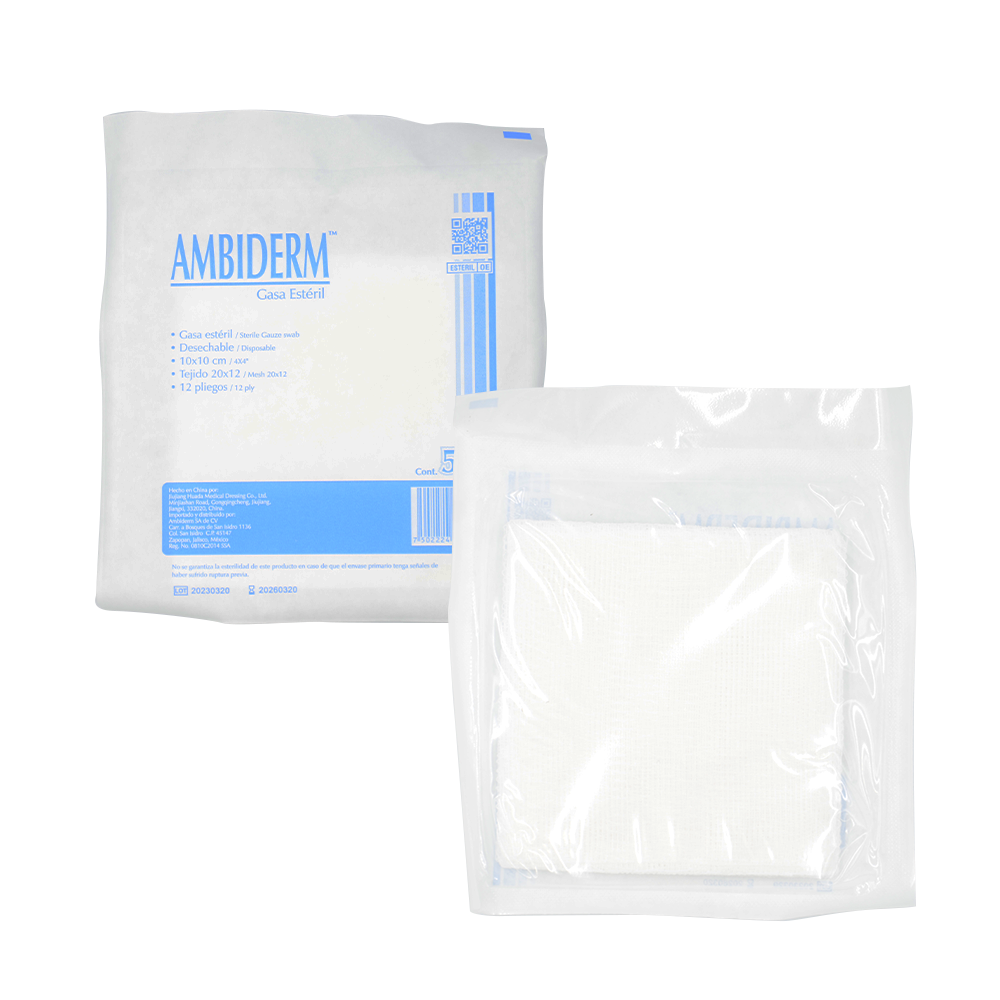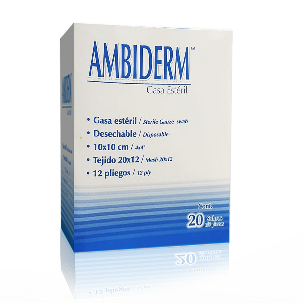 GASA ESTERIL ALGODON 10 X 10 CM 12 PLIEGOS TRAMA 20 X 12 CAJA C/20 SOBRES C/5 PZAS