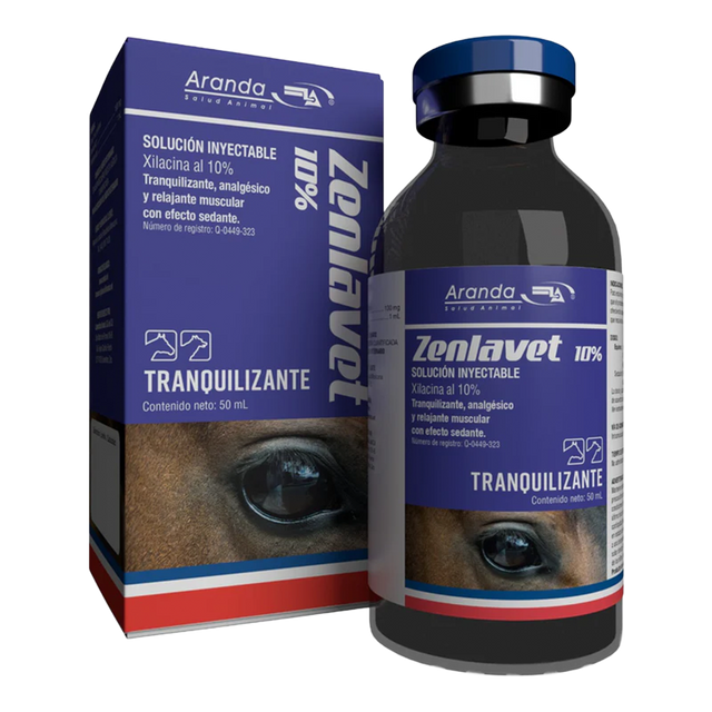 Solución inyectable, Tranquilizante, analgésico y relajante muscular con efecto sedante.