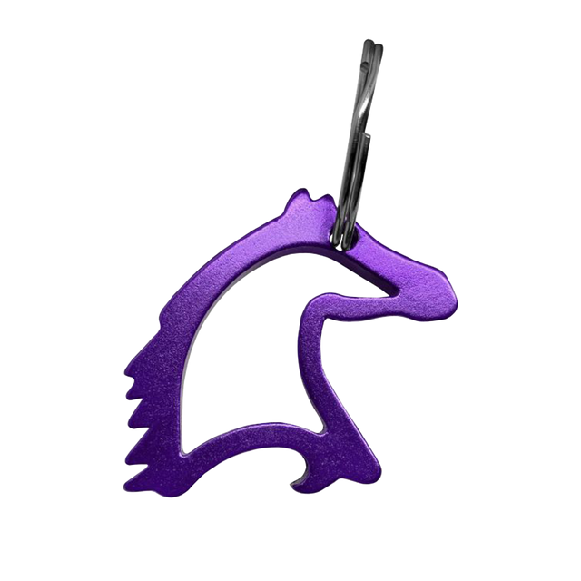 SHOWMAN LLAVERO Y DESCORCHADOR EN FORMA DE CABEZA DE CABALLO DE ALUMINIO 1 1/3'' (MORADO)