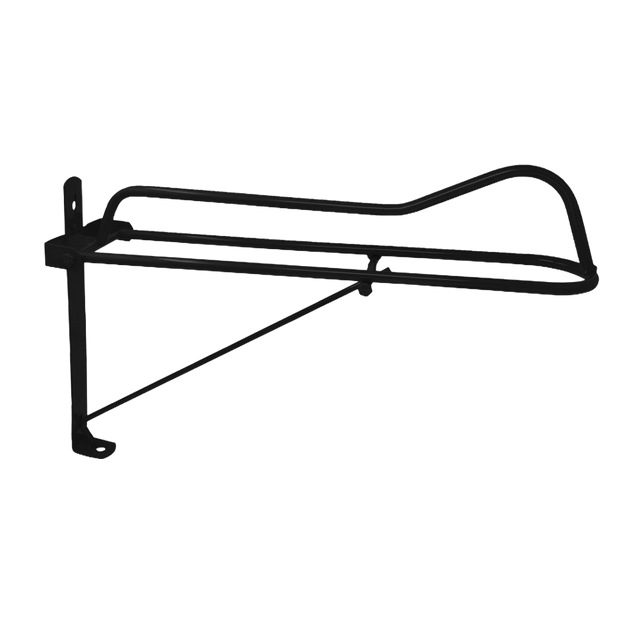 Soporte para silla diseñado para montarse en la pared y plegarse cuando no está en uso, ideal para ahorrar espacio en establos compactos. Es compatible con sillas estilo Western e English. Gracias a su diseño eficiente, permite almacenar tu silla con facilidad y liberar espacio en el piso cuando ya no la estás usando. Máxima conveniencia sin renunciar a la resistencia.