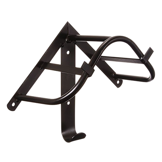 Este soporte para arneses de acero recubierto de vinilo es perfecto para mantener organizados los arneses y el equipo de entrenamiento en el cuarto de aperos, el remolque o la caja de arneses. Completo con gancho de tachuela simple y pestañas frontales para evitar que el equipo se caiga.