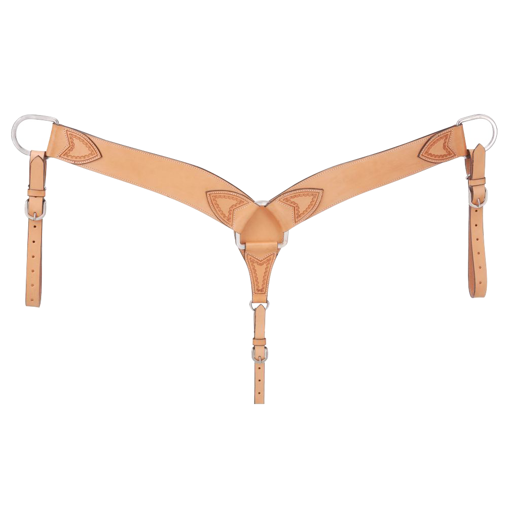 ¡Por fin un peto resistente para largas jornadas de trabajo sobre la silla! Hecho de cuero de calidad doblado y cosido por expertos para brindar máxima resistencia y mayor duración. El corte ancho y curvo permite que se ajuste cómodamente sobre los hombros del caballo. Completo con correas ajustables extra anchas y un clip para cincha.