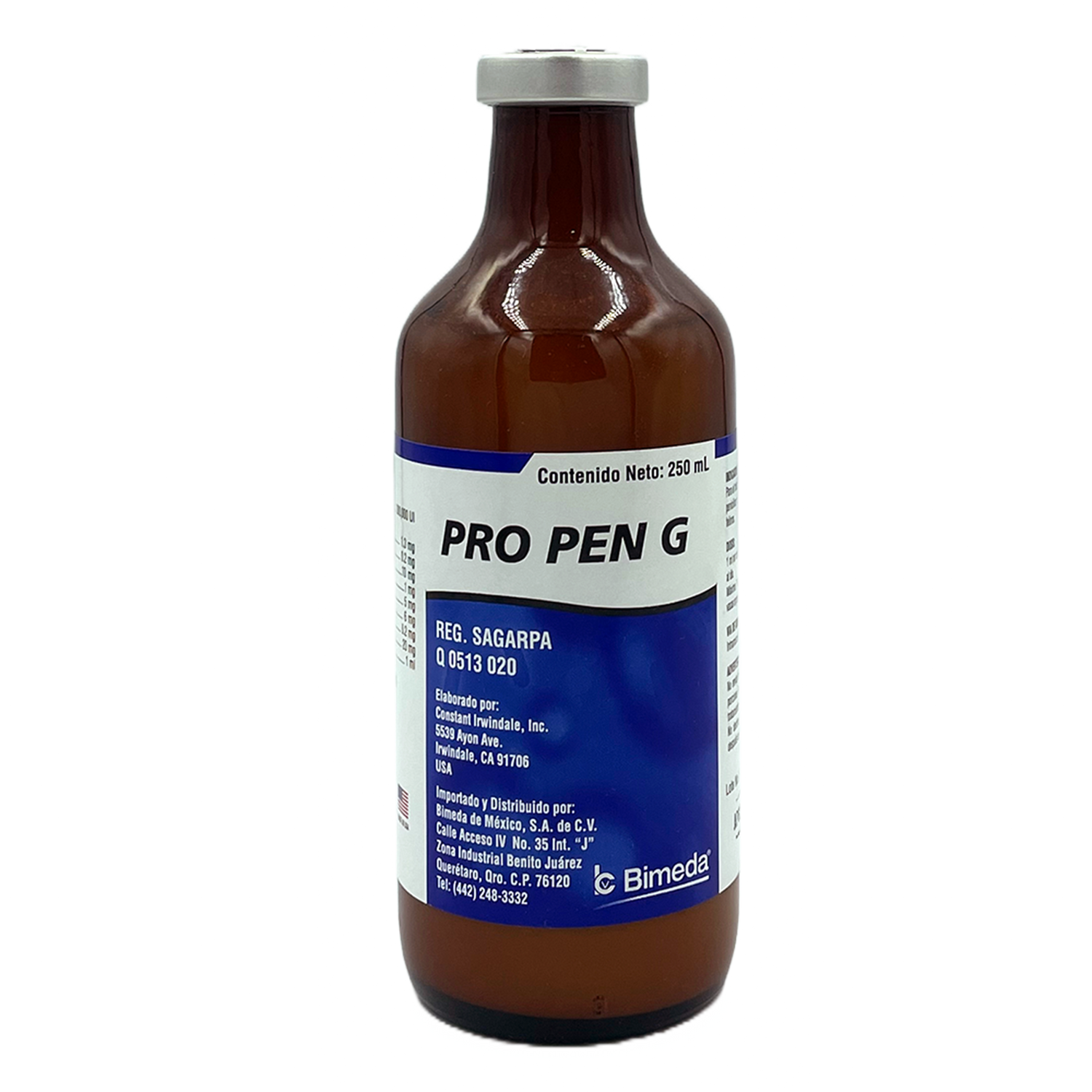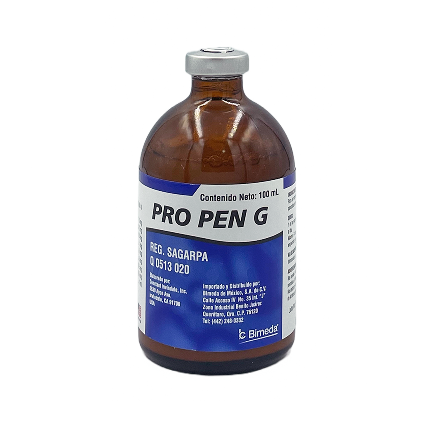 La penicilina G procaína es un método alternativo en suspensión inyectable. Cada ml de Pro-Pen-G contiene 300,000 UI de penicilina G potásica y 130.8 mg de hidrocloruro de procaína más diversos ingredientes inertes. Agua destilada c. b. p. 1 ml. La penicilina G potásica y el hidrocloruro de procaína reaccionan para formar la penicilina G procaína.