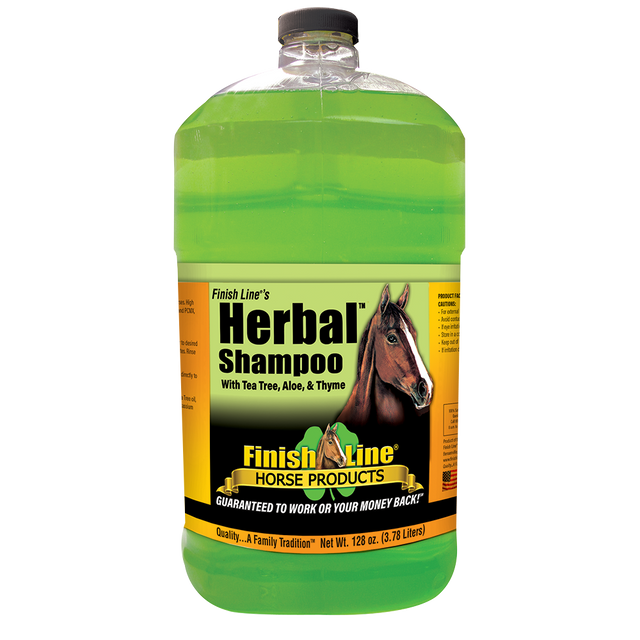 Herbal Shampoo es el champú suave y delicado de Finish Line®. Fue cuidadosamente formulado desde cero, solo para caballos, con los aceites esenciales Tea Tree y Tomillo que ayudan a promover una piel saludable para su caballo. Este es un champú suave, con pH equilibrado (para igualar el pH de la piel equina) y muy espumoso que ayuda a hidratar la piel sensible mientras deja un aroma herbal refrescante y un cabello limpio.