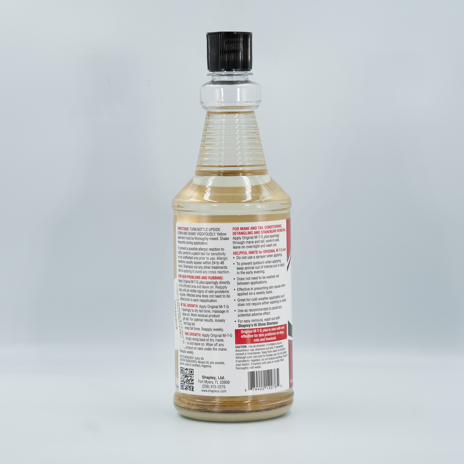 El M-T-G original es fácil de usar. Simplemente frote una pequeña cantidad en el área afectada sin molestar ni quitar las costras. No hay necesidad de enjuagar o lavar entre aplicaciones. Una vez que el área esté curada y desee lavar los residuos, simplemente use el champú Hi Shine de Shapley, que está especialmente formulado para eliminar el Original M-T-G rápida y fácilmente. El spray Easy-Out de Shapley también eliminará el M-T-G original tanto del caballo como de las manos.