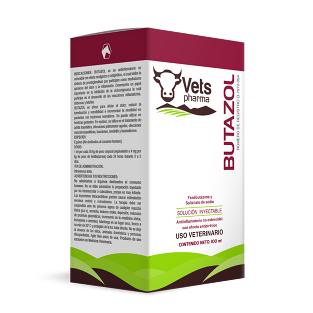 • Concentración: Fenilbutazona 200 mg/ml + Salicilato de sodio 20 mg/ml