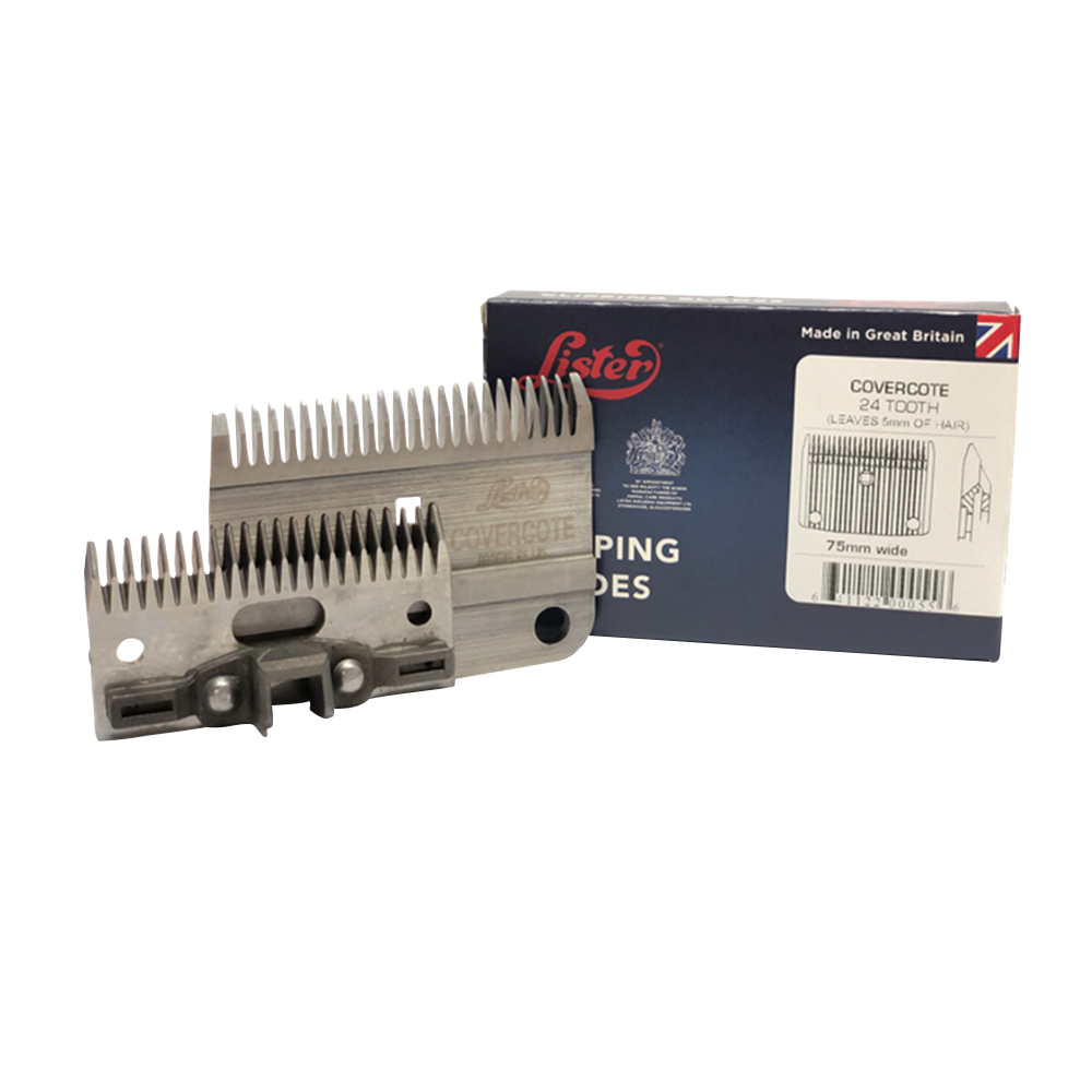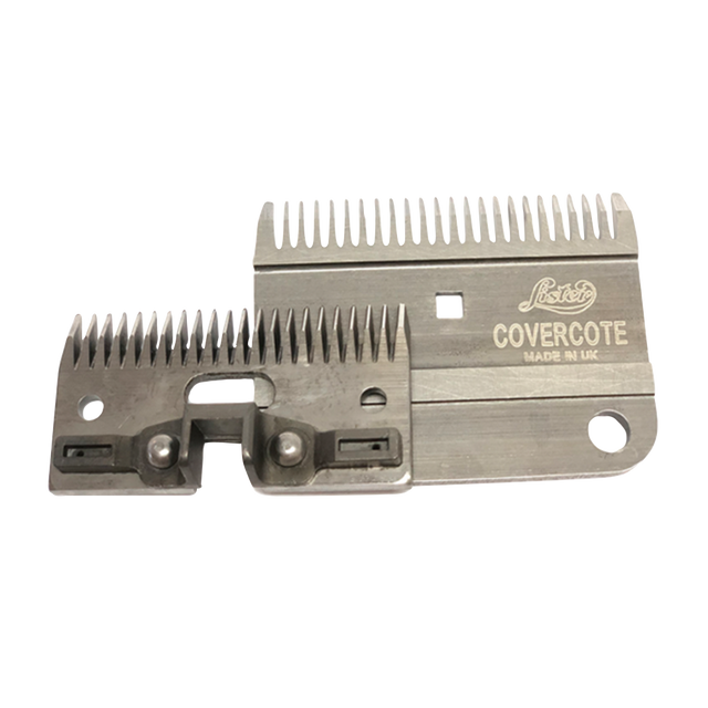 La cuchilla Covercote está diseñada para recortar áreas del animal que requieren mayor protección, como las patas, dejando una capa de pelo más larga donde es necesario. Es compatible con todas las cortadoras Lister.