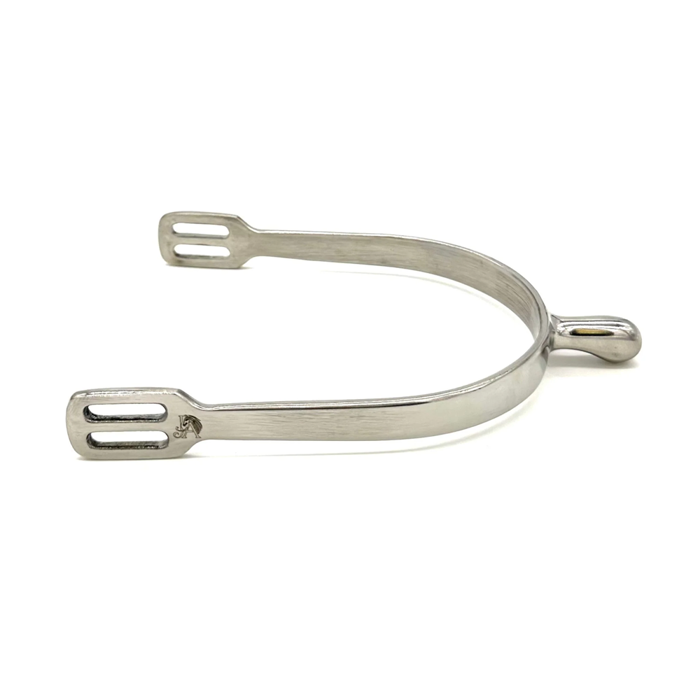 La Stride Spur está diseñada para ofrecer contacto refinado y control preciso sin perder suavidad. Su punta redondeada y roma aplica una presión gentil sobre una superficie más amplia, ideal para caballos sensibles o con buena respuesta a las ayudas ligeras. El cuello recto tradicional mantiene la espuela en una posición neutra bajo el talón, proporcionando comunicación directa y sin agresividad.
