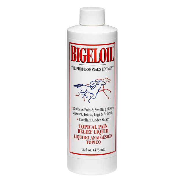 Bigeloil® Liniment, desarrollado originalmente para las pistas de carreras, es un linimento líquido de rápida acción que estimula la circulación para aliviar músculos, tendones y articulaciones adoloridas o fatigadas. Su fórmula brinda una sensación refrescante y moderada, con un aroma agradable y una absorción rápida. Es ideal para el uso diario en caballos deportivos o de trabajo, y una alternativa más suave al linimento veterinario Absorbine®.