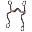 Este bocado de acero negro está diseñado con mejillas fijas y patas largas en S para un equilibrio y un apalancamiento correcto. La boquilla es un arco de puerto bajo y presenta barras envueltas en alambre de cobre para promover la salivación y aumentar la sensación contra la lengua y los labios. La adición de una cadena de freno a este bocado puede ayudar a aumentar la velocidad, la clasificación y la parada.