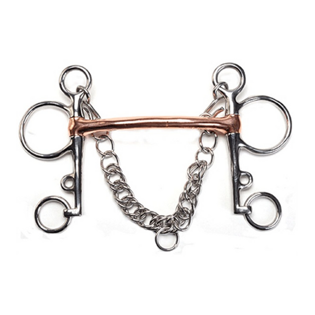 Bocado Pelham diseño Tom Thumb de acero inoxidable con cadena y boca mullen de cobre de 5" y 13 mm y mejillas de 4".
