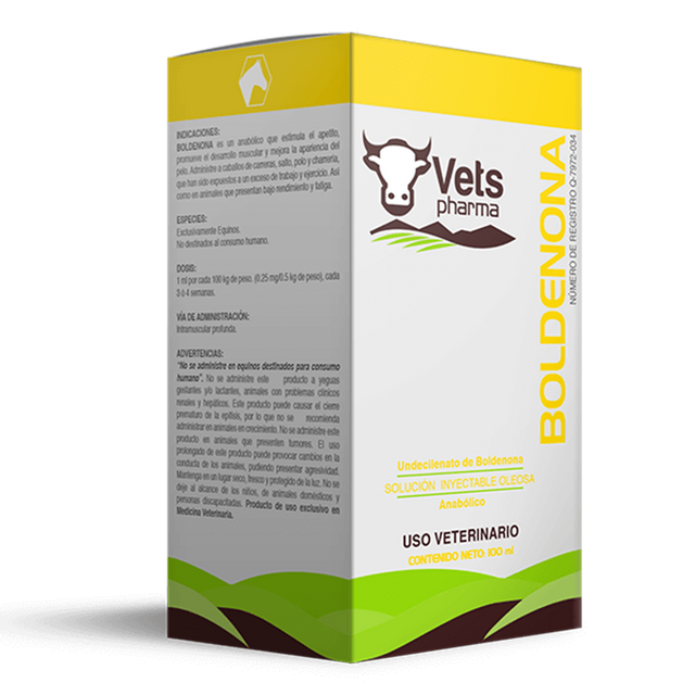 Esteroide anabólico de acción prolongada con mínima acción androgénica y hormonal. Estimula el apetito, promueve el desarrollo muscular y mejora el brillo del pelaje en equinos.