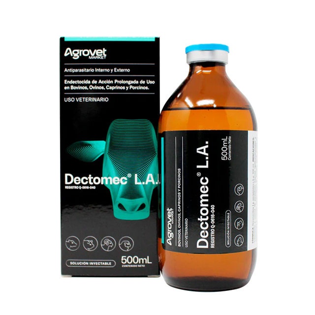 Dectomec® L.A. es una solución inyectable, antiparasitaria-endectocida de larga acción y lista para usar. Es de color amarillento pálido, estéril, y contiene 1% de doramectina. Es una solución inyectable de pequeño volumen que controla efectivamente una amplia gama de nemátodos y ectoparásitos que afectan la salud y la productividad de los bovinos, porcinos, ovinos y caprinos. Posee un amplio margen de seguridad, es bien tolerada y fácil de inyectar, lo que la hace particularmente adecuada para el control de los parásitos. Como ectoparasiticida, además de actuar contra todos los ácaros de la sarna en las especies domésticas, Dectomec® L.A. posee una indicación de ayuda al control de la Mosca de los Cuernos.
