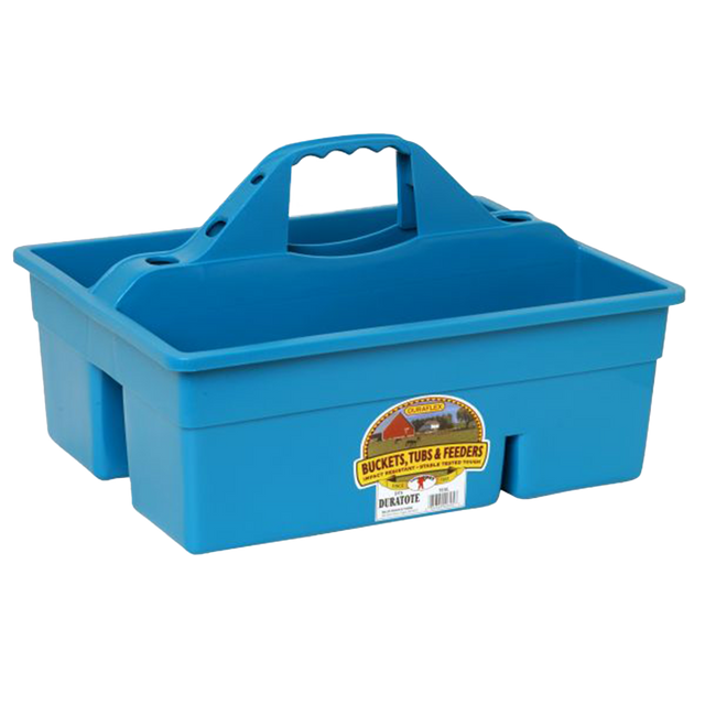 Caja organizadora robusta para grooming ecuestre, herrería o establo. Fabricada con plástico de alto impacto, cuenta con compartimentos diversos para brochas, aerosoles, limas u otros accesorios, además de asa ergonómica para transporte.