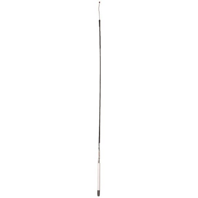 Este látigo cuenta con un centro de fibra de vidrio prácticamente irrompible y correctamente equilibrado envuelto con una hermosa cubierta de hilo negro resistente al agua. Está bellamente diseñado con una empuñadura de cuero blanco y rematado con una tapa cromada.
