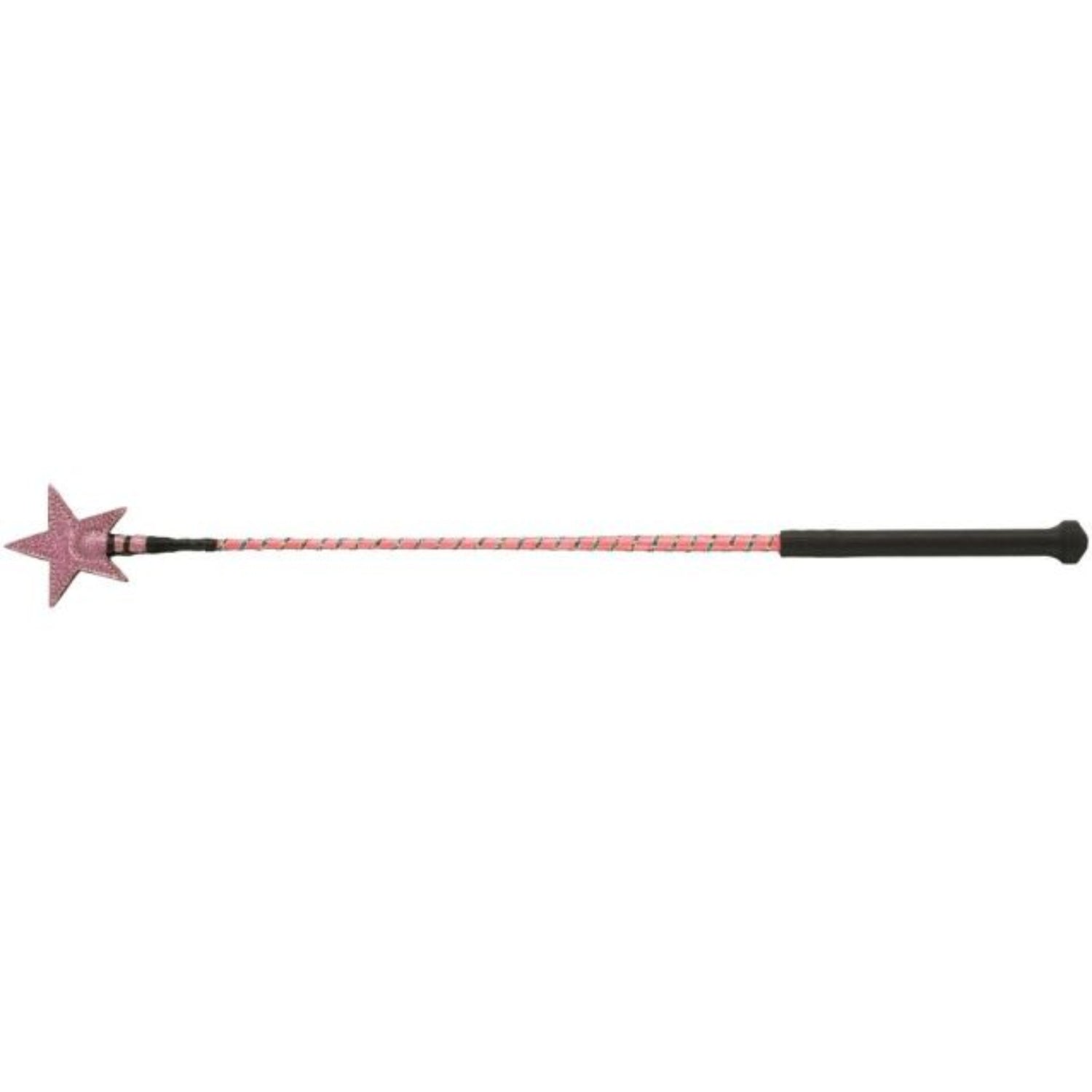¡Esta adorable fusta brillante en forma de estrella es perfecto para enseñar a niños y adultos por igual! Los fuetes bien equilibrados y de calidad cuentan con un bonito diseño retorcido brillante y un botón automático cosido en forma de estrella. La empuñadura de goma moldeada viene con una muñequera de seguridad para facilitar el manejo.