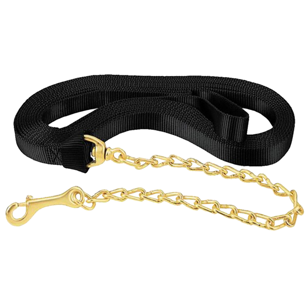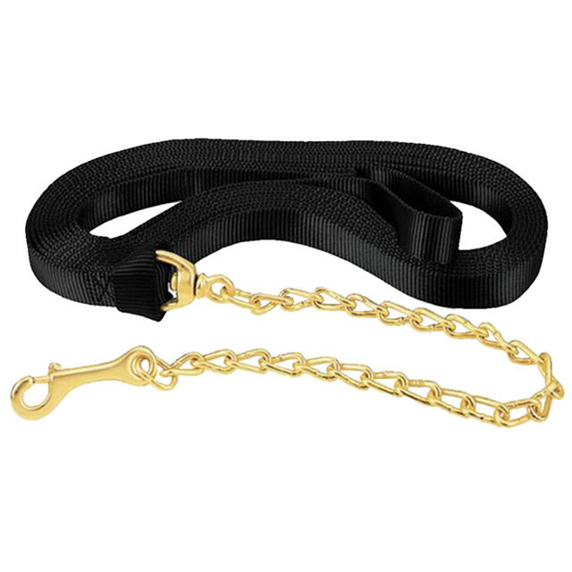 Esta guía plana de nailon tiene una cadena chapada en latón de 24". Mide 1" x 24'.