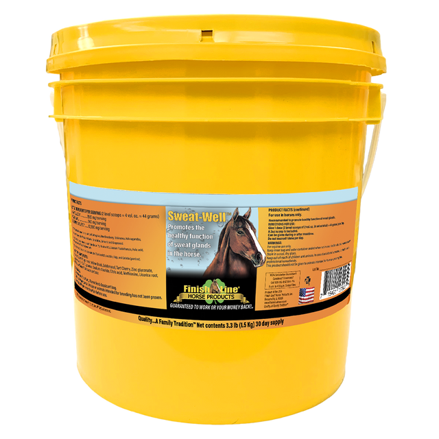 Sweat-Well es una fórmula NUEVA y EXCLUSIVA que ayuda a promover el funcionamiento saludable de las glándulas sudoríparas de su caballo. Sweat-Well es compatible con 7 sistemas diferentes que afectan la sudoración en el caballo: precursores del hígado, inmunitario, suprarrenal, renal, metabólico, nervioso y neurotransmisor.