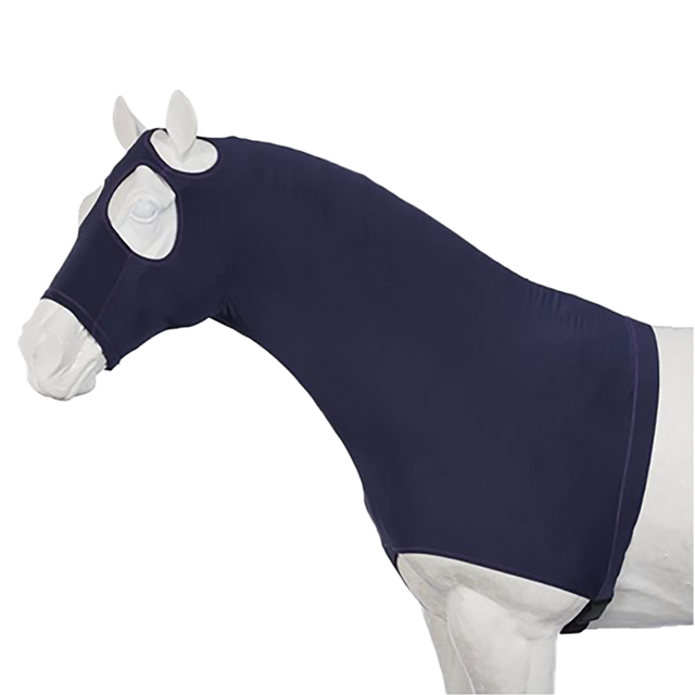 Esta capucha está fabricada con un material de spandex duradero pero flexible con la cantidad justa de elasticidad. Diseñado sin costura central en la cara, ofrece un ajuste más esculpido para evitar que se mueva durante el uso. Completo con cremallera parcial, correa central para el pecho, correa ancha elástica para el vientre con cierre de hebilla y orificios grandes para ojos y orejas para evitar rozaduras o irritaciones. ¡Ideal para mantener el cuello y la melena protegidos antes de un espectáculo!