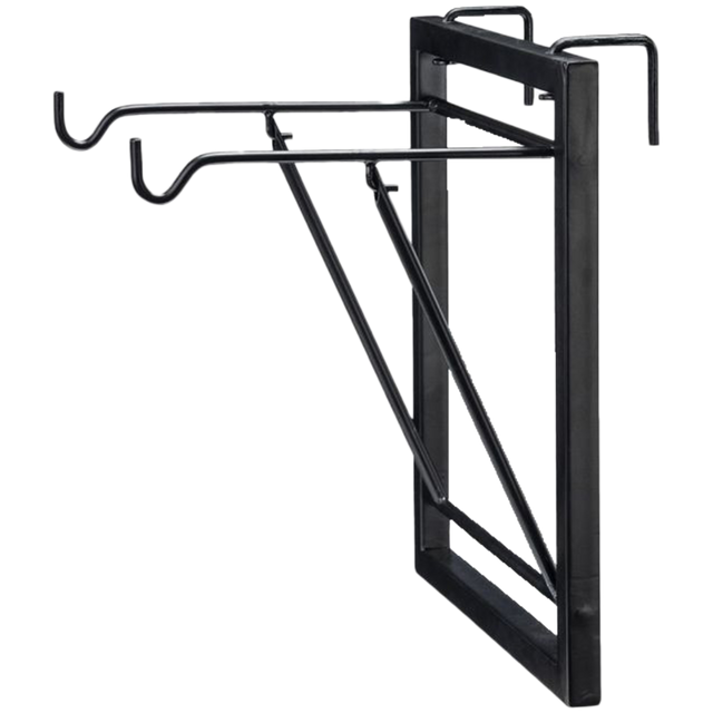 Dos ganchos giratorios de 1'' permiten que este colgador cuelgue fácilmente sobre un puesto o cerca. Combínelo con los ganchos de limpieza plegables Tough1 para obtener una solución de almacenamiento fácil para bridas o cabestros. ¡Se pliega, lo que lo hace ideal para llevarlo a espectáculos u organizarlo en casa
